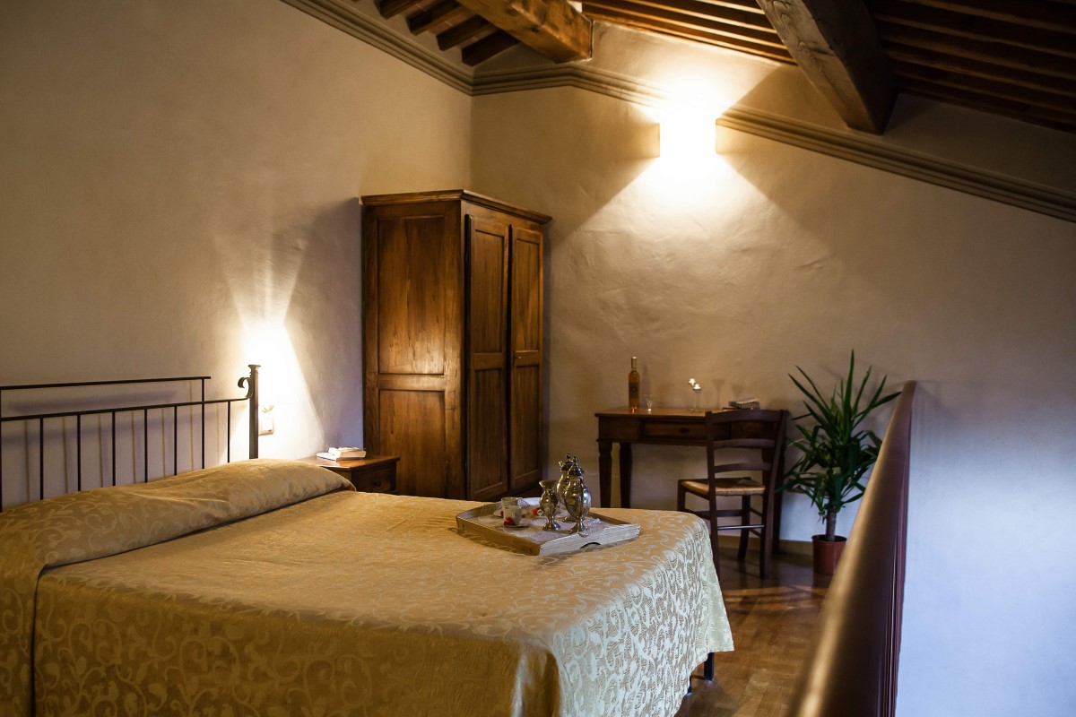 The Tuscan Farm – the farmyard Where today stays the garden of the Guicciardini Farm, once there was the “Aia”: a farmyard generally located in front of the farm main entrance, it was the vital centre of open-air rural life. The farmyard was paved and usually hosted one or more trees to ensure shade in the summer. Here, after the harvest, the grain haystacks were collected and threshed, the tools and animals were assembled for the working day. In the farmyard the families organized dances and country parties and entertained themselves in the so-called "veglia": evenings of rural sociality, following the cycle of the seasons. a part of the farmyard old pavement is still visible at the Guicciardini Farm; when the farm was abandoned and then restored for a residential use, the courtyard was transformed into a garden, where one can still admire the huge linden, the old lemon trees and the cypresses. The peculiarity of this garden is that it is enclosed by the ancient walls of the city of San Gimignano and its entrance’s a large 19th-century gate